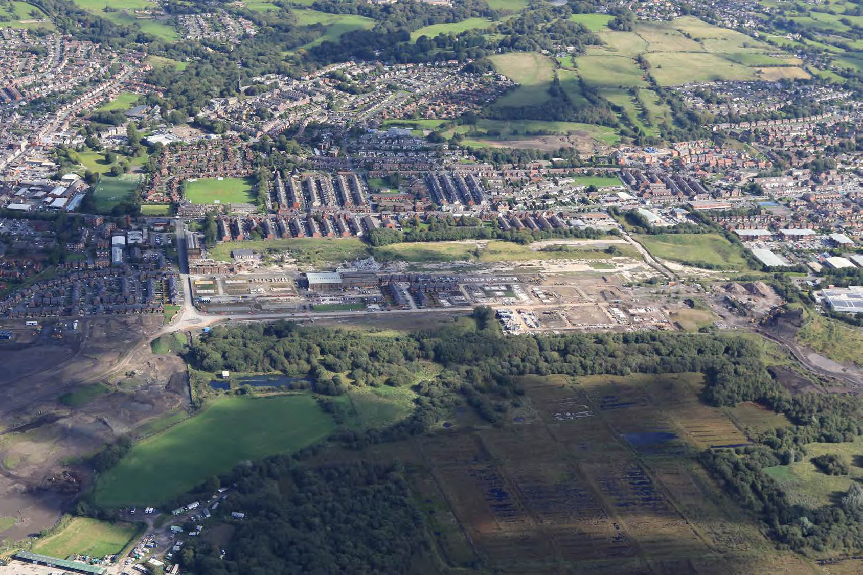 We provided masterplanning services on this former Locomotive works site. The 74ha site forms part of Bolton Council’s Core Strategy principally for the provision of 1600 new homes. We worked closely with the wider consultant team to provide a development strategy for the site, incorporating sophisticated environmental and remediation measures due to the past and present industrial uses and proximity to Red Moss Site of Special Scientific (SSI) & Site of Biological Importance (SBI).