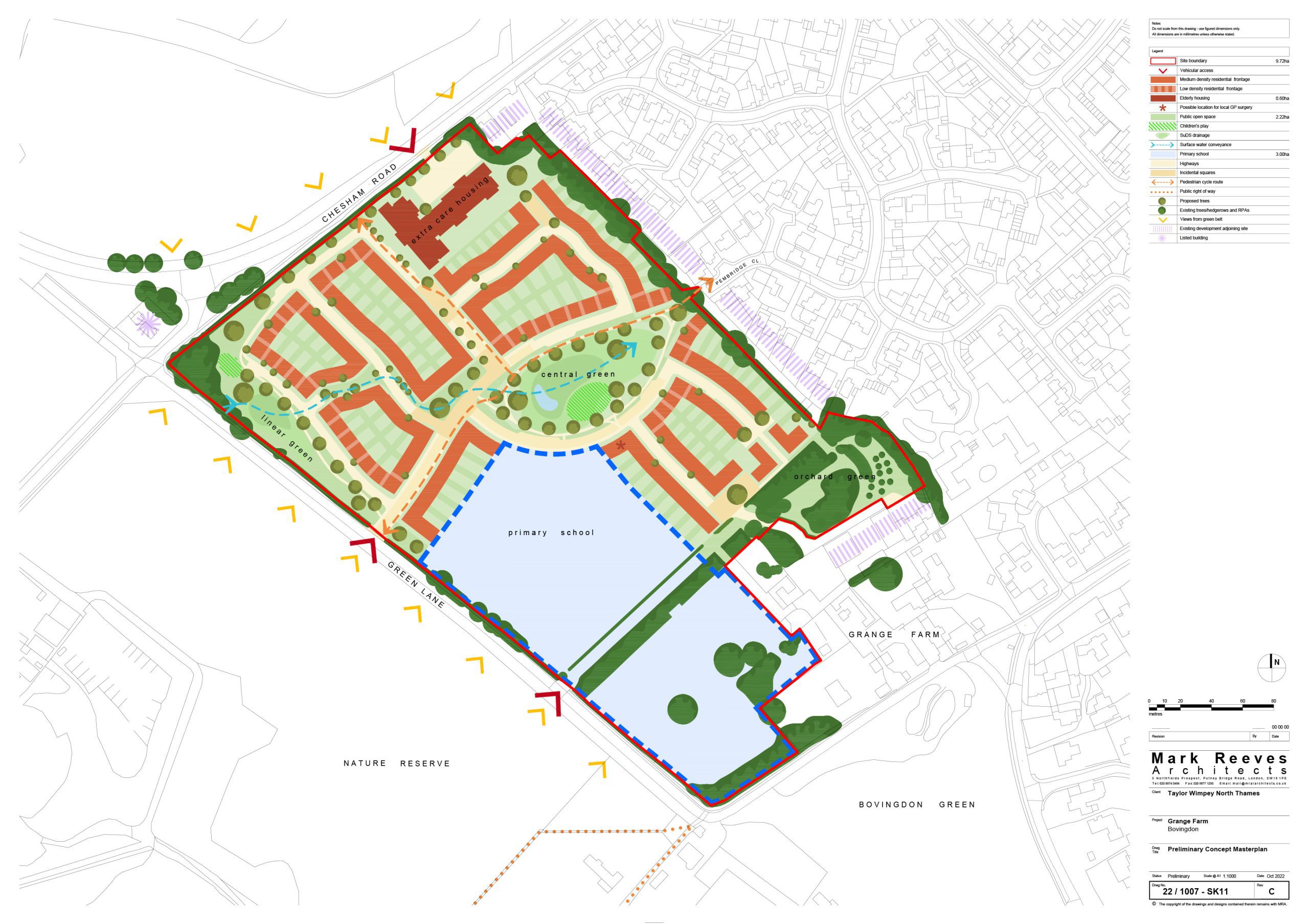 A Hybrid planning application for the site was submitted in August 2023 informed by community and stakeholder engagement and liaison with the local planning authority comprising both pre-application advice and input from the Design Review Panel. The application identified a package of very special circumstances for approving development in advance of the emerging Local Plan. These comprised matters both unique to the site and consistent with the borough’s acute unmet housing need. The application was put forward in-tandem with bespoke SANG proposals for mitigation of recreational impacts at the Beechwoods SAC.